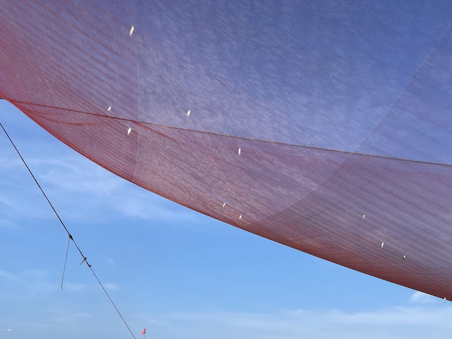 | On the way back, I saw that these tiny fish had gotten stuck in the net and left for birds to pick off. |